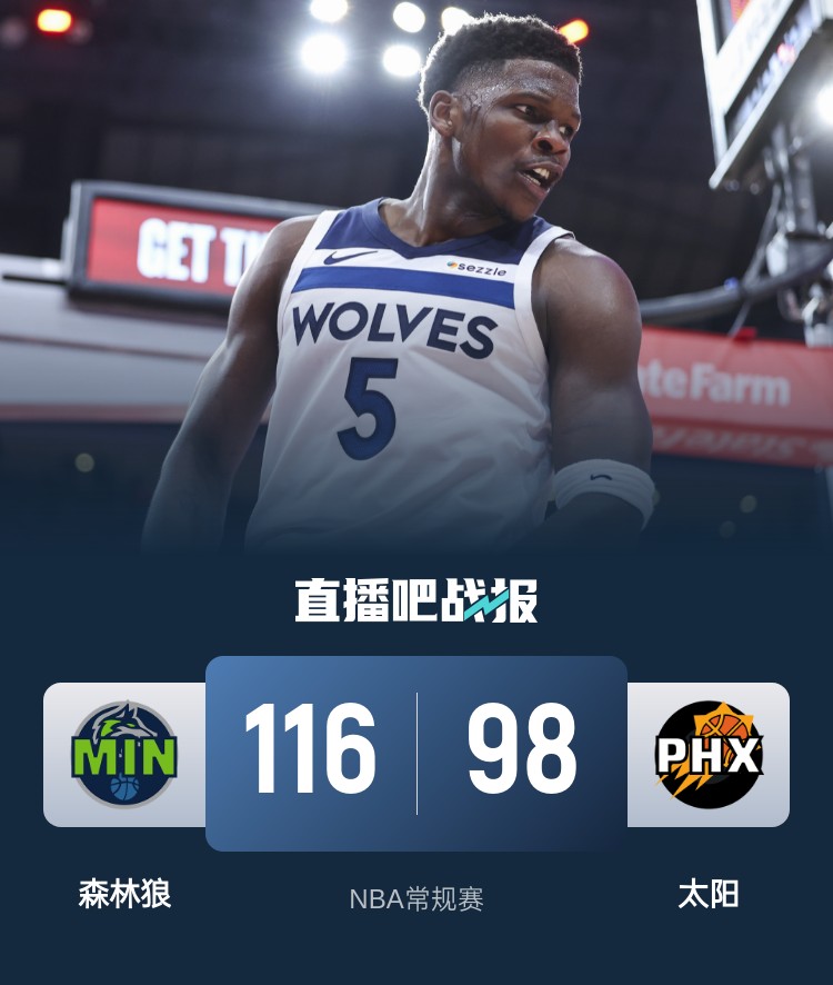 当前位置: 首页 > 篮球新闻 > 爱德华兹解禁44+5+7 兰德尔复出20+6 KD26+10 森林狼三杀太阳