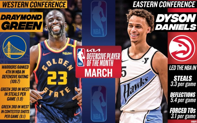 月最佳防守球员:西部追梦 东部丹尼尔斯 祖巴茨&多特等获提名