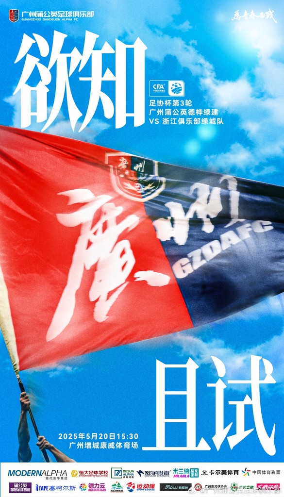 05月20日讯 北京时间15:30,足协杯第3轮,中乙球队广州蒲公英主场迎战浙江队,赛前官方公布首发阵容。