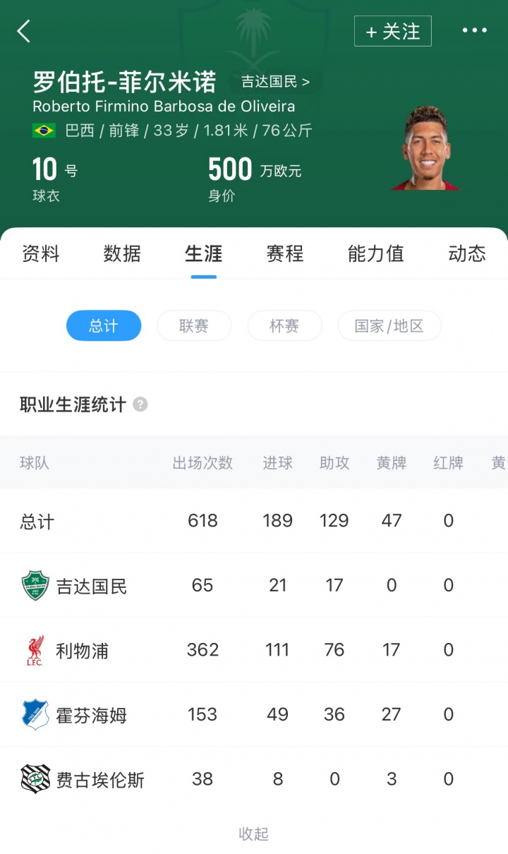 值得一提的是,菲尔米诺在2023年夏天与利物浦合同到期,随后以自由身加盟吉达国民,据悉球员年薪为2000万欧。效力球队两个赛季,菲尔米诺共出战65场比赛,贡献21球17助攻。并在亚冠表现出色,帮助球队赢得了冠军。