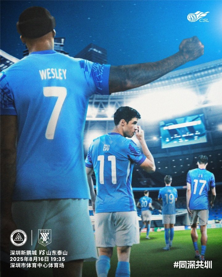 08月16日讯 北京时间今晚19点35分,中超第21轮,深圳新鹏城主场迎战山东泰山,赛前双方公布首发阵容。
