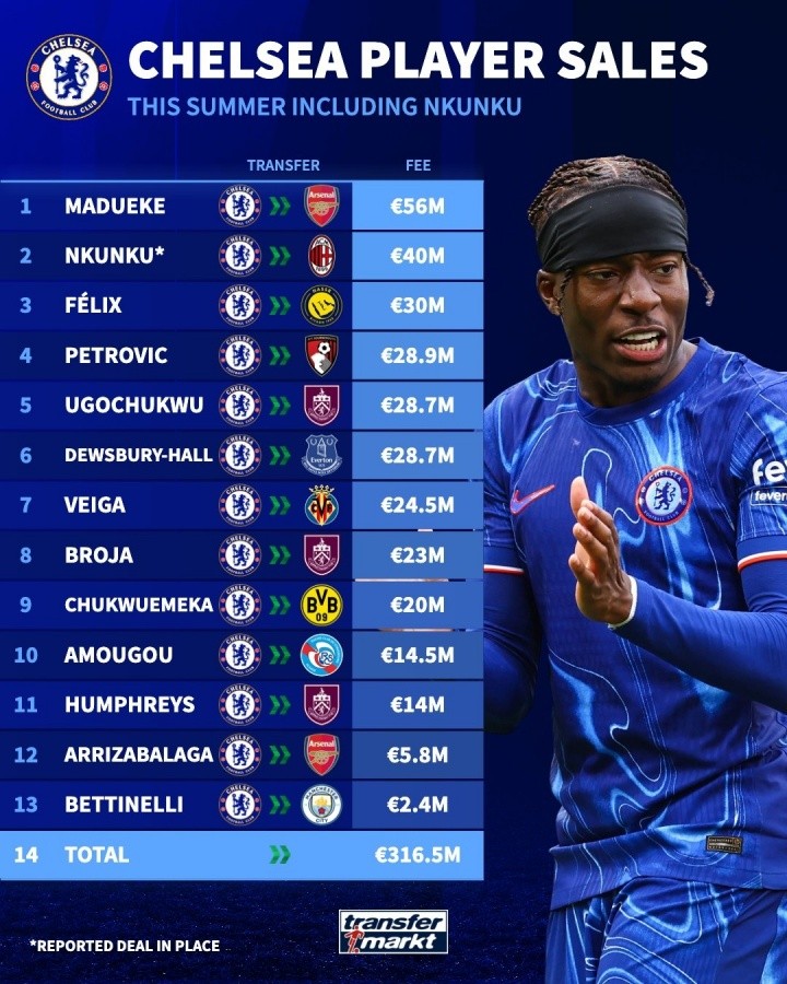 顶级制服组!切尔西超4000万卖恩昆库,今夏卖13人收入超3.16亿欧