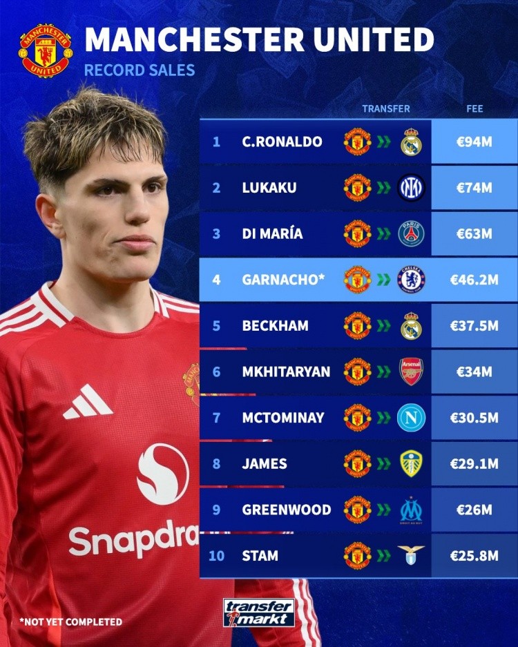 4620万欧!加纳乔将成为曼联出售第四贵球员,C罗9400万欧最贵