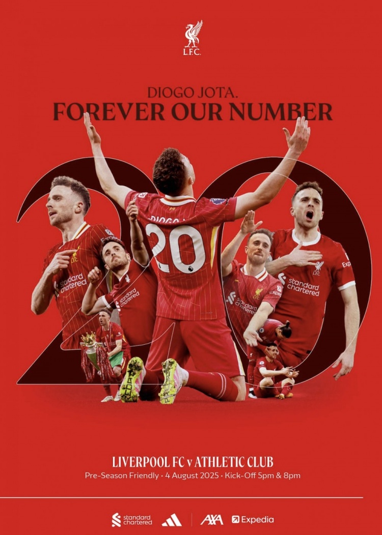 8月4日讯 利物浦官方宣布,在与毕巴鄂竞技比赛日特刊的封面上,特别向若塔致敬。利物浦官方公告:在2025-26赛季安菲尔德首场比赛日的特刊...