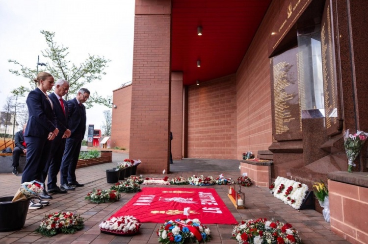 利物浦官方缅怀希尔斯堡惨案遇难者,献上花环、基地降半旗并默哀